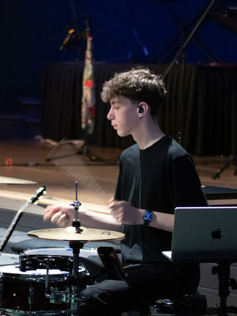 Zach Scher plays with a rare mix of feel, precision, and heart — the kind of rhythm that makes people stop and listen. His timing is steady but expressive, always reacting to the musicians around him and pulling the whole sound together.